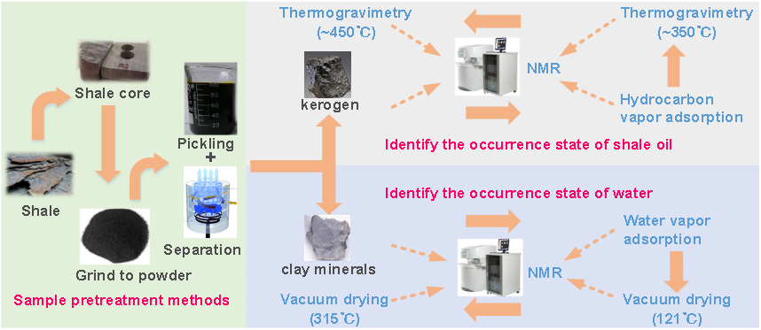 基于上述工作,课题组近期全面评述了页岩油在储层中的赋存空间及赋存状态,总结了页岩油赋存孔隙和赋存状态的表征和分析方法,分析了影响页岩油赋存的主控因素,提出了联用低温等离子体灰化前处理与分子探针吸附揭示含油页岩基质开孔及闭孔结构信息,以及联用分步热解、二维核磁共振和烃蒸汽吸附识别页岩油赋存状态的优化方案,论证了微波辐照增采页岩油技术可行性和潜在优势。