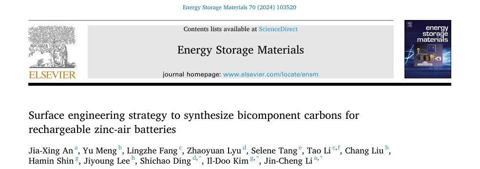 上述研究以“Surface engineering strategy to synthesize bicomponent carbons for rechargeable zinc-air batteries”为题,发表在国际高水平期刊Energy Storage Materials上。论文的第一作者为javHiHi