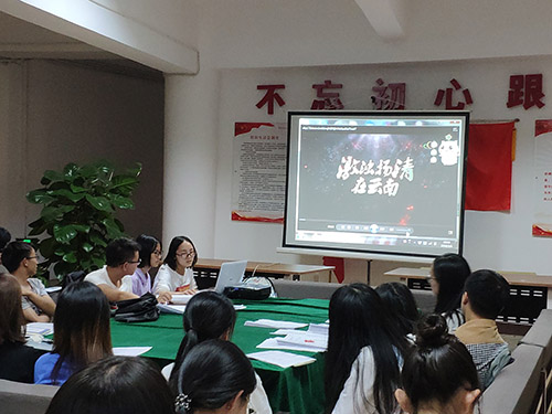 第一党支部全体成员在化工楼三楼党建活动室集中观看视频《激浊扬清在云南》第一集《亮剑惩腐》。