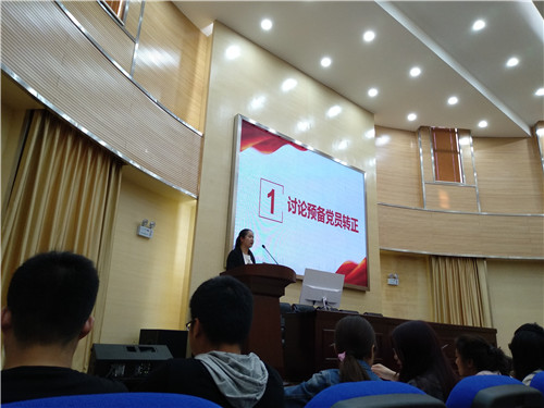 学生第五党支部于2018年5月23日19点整,在化工楼100报告厅召开了关于讨论预备党员转正的支部大会,党支部全体党员参会,部分入党积极分子和入党申请人列席参会,会议由党支部书记金雯老师主持。