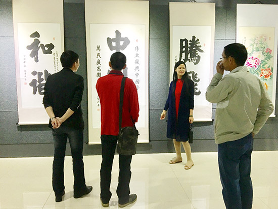 退休教师赵赞成老先生撰写的大字“中国梦”、“和谐”、“腾飞”非常醒目,充分展示了老一辈对祖国的无限祝愿和自豪之情。