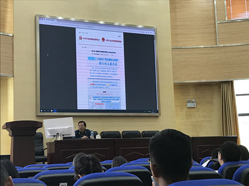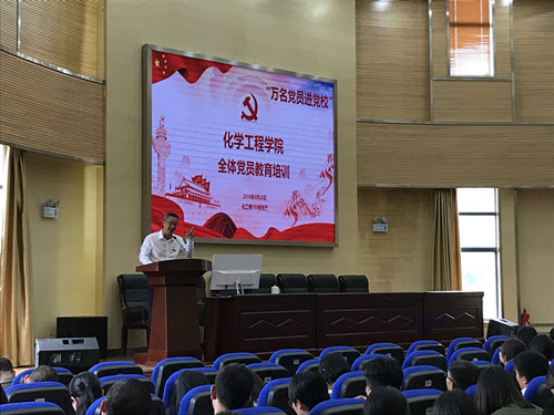 在化工楼报告厅举行“万名党员进党校”教育培训活动,学院邀请了党校的殷国禺老师和纪检监察室主任赵兴河老师对全院党员作专题报告。