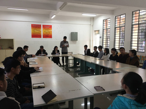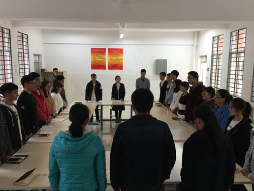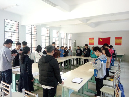 最后,全体人员起立,奏唱国际歌,在张老师的提议带领下,奏唱国际歌,并向我们讲解国际歌的历史,告诫我们铭记历史及先烈,遗忘等于背叛,并以习近平总书记在十九大开幕式开场默哀情节为例教导大家,各位到场同志感受深切,受益匪浅。此外,张老师激励大家作为一名大学生党员,我们身上肩负着历史使命,应当严格要求自己,以身作则,不断进步。随后,当选新一届的支部委员举行第一次支委会,选举张祎颖老师为支部书记,何雅欣同志为组织委员,陈楚辉同志为宣传委员。至此,大会圆满结束。