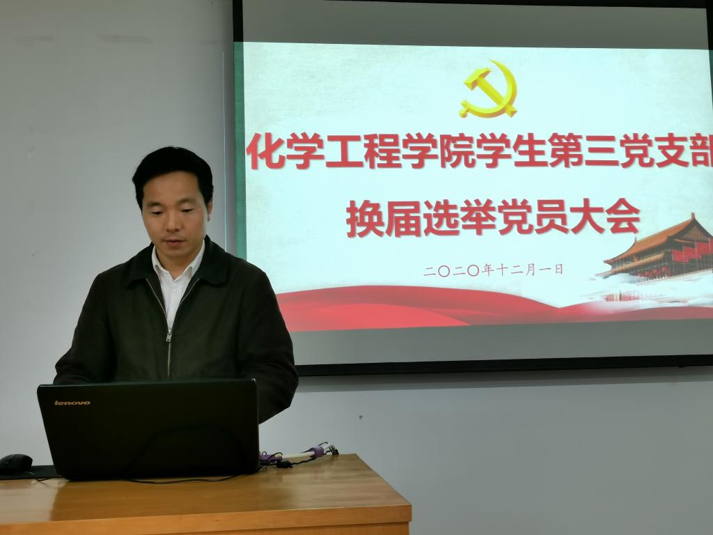学生第三党支部于化工楼召开了党员大会进行支委换届选举,会议由支部书记袁敬老师主持,支部党员参加了会议。