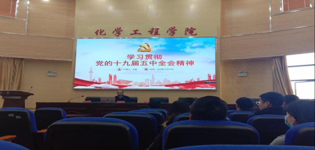 2020年12月24日,齐毅书记在化工楼100报告厅召开了学习贯彻“十九届五中全会”精神会议,本科生学生第四党支部全体党员参加了会议。