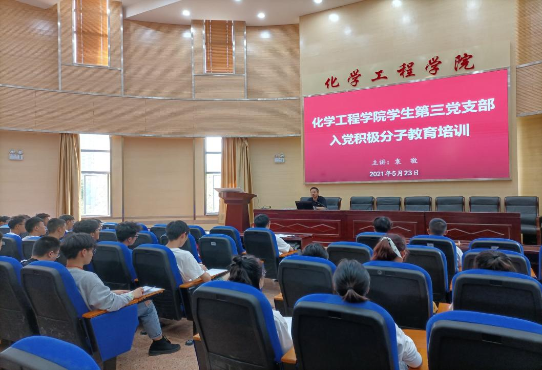 2021年5月23日18:00,javHiHi 学生第三党支部在化工楼100报告厅对党支部51名入党积极分子进行了培训,主讲人为党支部书记袁敬老师。