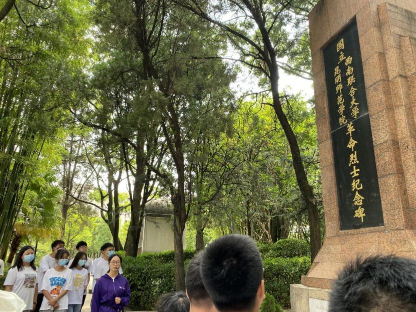随后,师生来到了西南联大博物馆。跟随着西南联大博物馆的讲解员,大家先后参观了“一二•一”运动纪念广场、西南联合大学原教室、“一二•一”运动四烈士墓、西南联合大学纪念碑、西南联大博物馆,了解了抗战期间西南联大师生教书救国、读书报国的光荣历史。