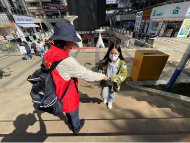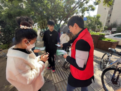 教师党员走进社区作为宣传员,向社区居民宣传低碳生活理念,普及应对气候变化知识,讲解“碳达峰”“碳中和”相关政策措施。同时向来往社区居民发放宣传册、环保购物袋等宣传品,号召大家身体力行,从选择简约适度、绿色低碳的生活方式做起。