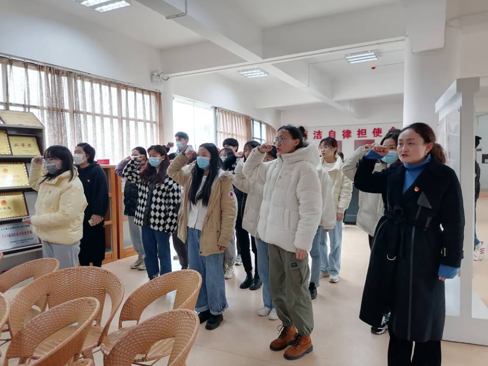 大会在庄严的《国际歌》中拉开了帷幕,接着院党委副书记宁玲同志对本次新党员入党宣誓大会进行致辞。随后,新发展党员宣誓、老党员重温入党誓词,在领誓人袁梓婷的带领下,面向党旗、庄严宣誓。宣誓完毕后,新党员刘梦萍同志向党组织表决心,表示今后要不断努力学习提升自己,坚定理想信念,努力成为民族复兴重任的时代新人。