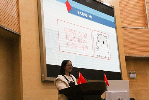 然后,罗晓菲老师讲授“新时代学生干部的奉献与担当”主题党课。罗晓菲老师从新时代、学生干部、奉献、担当、我们应该怎样做六个方面教导我们要做一个有理想、有追求、有担当、有作为、有品质、有修养的学生干部。