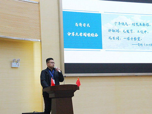 随后,吕涛同学从“我与阅读”出发,分享了他与读书社、阅读之间发生的点滴故事。他感谢书本让他能够静下来去思考、去感恩。