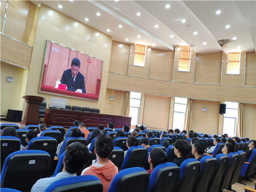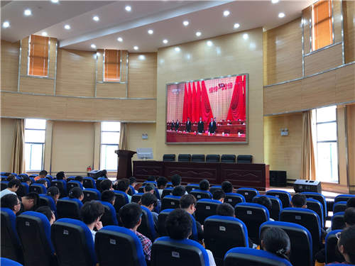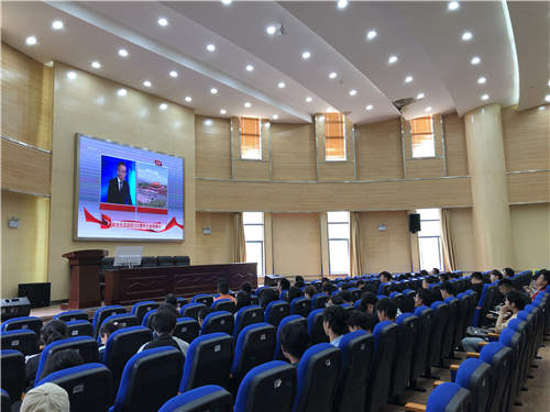 党委李云燕副书记、辅导员李凯宇、谭宏雪、罗晓菲与100名团员青年一同观看了纪念五四运动100周年大会的直播。