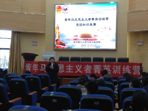 青年马克思主义者菁英训练营第七期“党章、团章知识竞赛”在化工楼100报告厅顺利举办。本次活动由有化工院团委书记李凯宇老师、团委谢丽芬老师出席,青马训练营全体营员参加,并由化工院团委副书记彭芳同学主持。