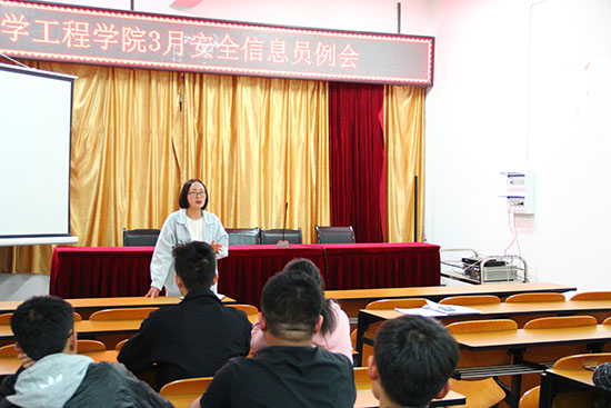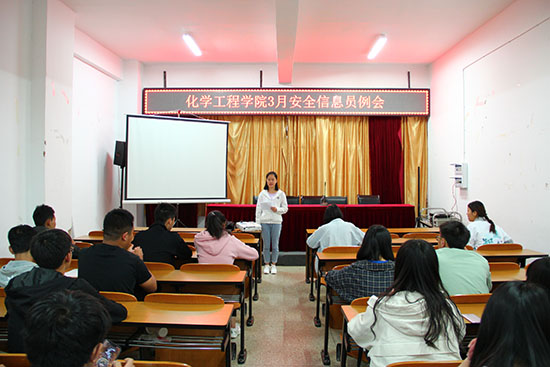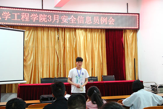 安全信息员例会在化工楼负一楼报告厅召开。勤助会指导老师杨欢老师、各班安全信息员及勤助会相关工作人员共同参与了本次会议。会议由勤助会勤工权益部李文涛主持。