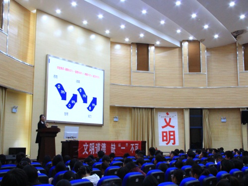 在化工楼100报告厅组织开展了2018级新生“讲文明,树新风”主题活动,2018级辅导员罗晓菲老师出席本次活动,2018级全体学生参加了本次活动。