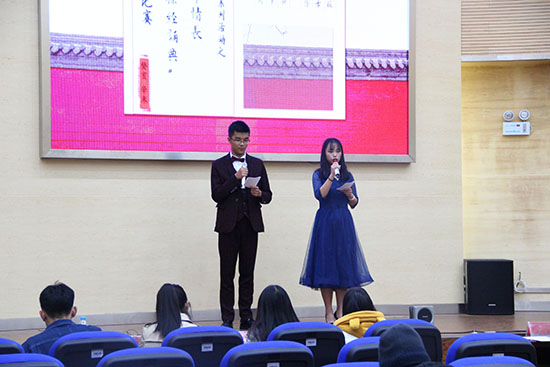 2018年12月5日19:00,“语挚情长,探经诵典”主题朗诵比赛在化工楼100报告厅举行。出席本次活动的有勤助会指导老师杨欢老师、团委谢丽芬老师、学工办罗晓菲老师、学院各学生组织代表以及勤助会所有工作人员。本次比赛由余毓兰和严志坚两人主持。