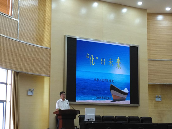 院长第一课——“化出未来”在化工楼100报告厅开讲。本次讲座由学院院长梅毅教授主讲,党委副书记李云燕老师出席,2018级全体新生到场参加。