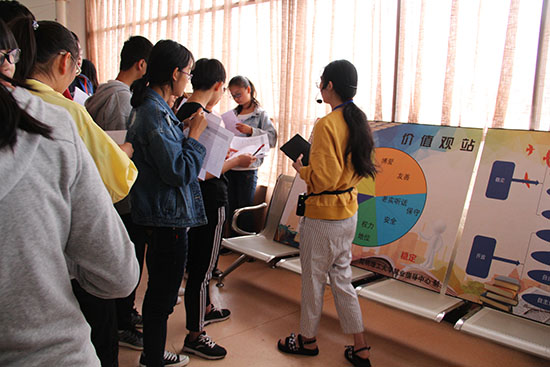 第三,性格站,性格站为每一个同学预测了自己的性格及适合的工作,即购物、研发、生产、客服、销售、市场、行政、人力等工作。第四,职业定位站,志愿者让同学们在工作世界找到自己的职业定位,更好的了解自己属于哪一方面,更适合什么工作。