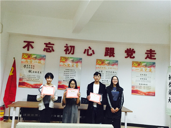 11月7日-11月9日,入选决赛的作品在学院微信平台进行了展示和投票,也带领同学们走进了美丽的大学校园,回忆校园生活。11月19日19点整,学生党员服务队在化工楼三楼党建活动室举行了颁奖仪式。首先,学生党员服务队为本次比赛做总结,对获奖同学表示祝贺;接着,就到了激动人心的颁奖时间,学生党员服务队为获奖同学颁发了奖状和奖品。“美时美刻-我的大学”摄影大赛也随着颁奖仪式的结束落下了帷幕。