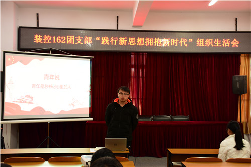 装控162团支部在化工楼负一楼报告厅开展了以“践行新思想拥抱新时代”为主题的组织生活会,校团委书记钟金栋老师参加了本次组织生活会,同时参与此次活动的有学院团委书记张祎颖老师,团委金雯老师,以及装控162团支部全体团员青年。此次组织生活会由装控162团支书温玉梅主持。