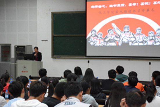 活动伊始,李副书记为读书节开幕式致词,她先告诉大家读书对个人生活、生存以及自身发展的巨大影响,旨在强调读书的重要性。紧接着她鼓励大家扩充阅读面,勤奋学习,培养阅读兴趣,积极参与到读书节系列活动中,去体验与感悟读书的乐趣,获取更多的知识,成为更好的自己,并宣布读书节正式开幕!随后,读书社社长李杰上台发言,他以亲身经历告诉大家读书使人明智,你读过的书越多,你的世界就越宽广。他用真诚的心让大家知道,手中有书便不会孤独,书籍是永远不会辜负我们的。