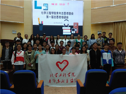 青年志愿者协会第一届青年志愿者培训大会在呈贡校区化工楼100报告厅进行,团委金雯老师、青协会长李新成、副会长丁怡心及青协全体成员参加了此次培训。