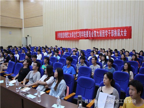 团委、学生会在化工楼报告厅召开第九届团学干部换届选举大会。出席本次大会的老师有团委书记张祎颖老师、团委金雯老师,第八届团学干部及各团支部代表共计200余人参加了本次换届选举大会,由副主席丁欢主持本次大会。