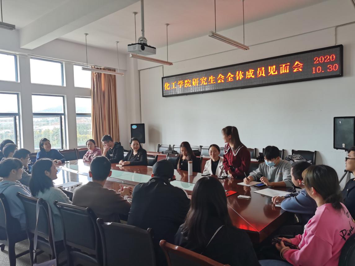 研究生会全体成员见面会在化工楼338举行,团委书记李凯宇老师出席会议,研究生学会全体成员参加。