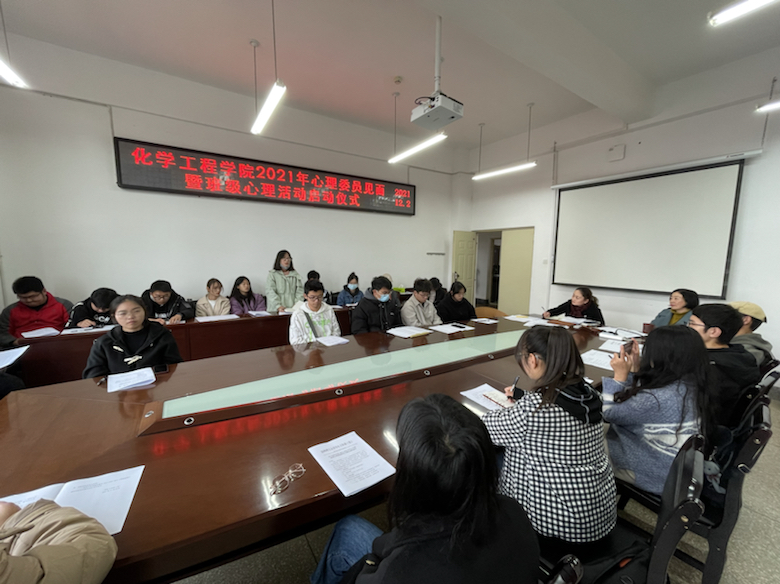 在化工楼338举办“2021年心理委员见面暨班级心理活动启动仪式”。学院党委书记李云燕老师、党委副书记宁玲老师、负责心理工作辅导员李凯宇老师及各班心理委员,共计40余人参与,本次会议由李凯宇老师主持。