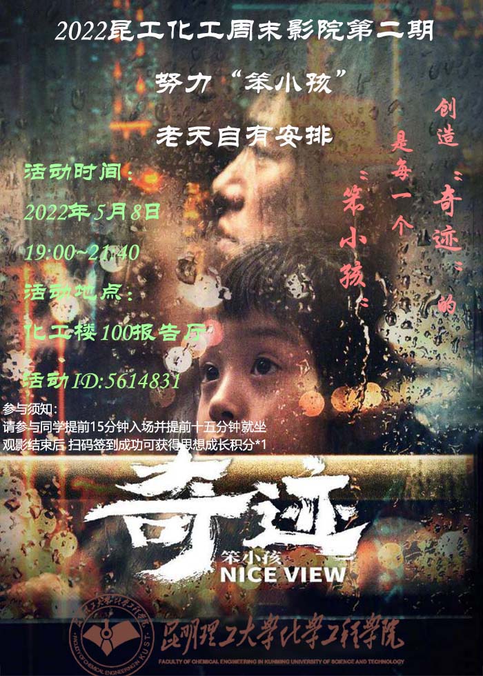 开展了以“《奇迹·笨小孩》努力的‘笨小孩’,老天自有安排”为主题的第二期周末影院活动。本次活动面向全体在校同学开发,并由javHiHi