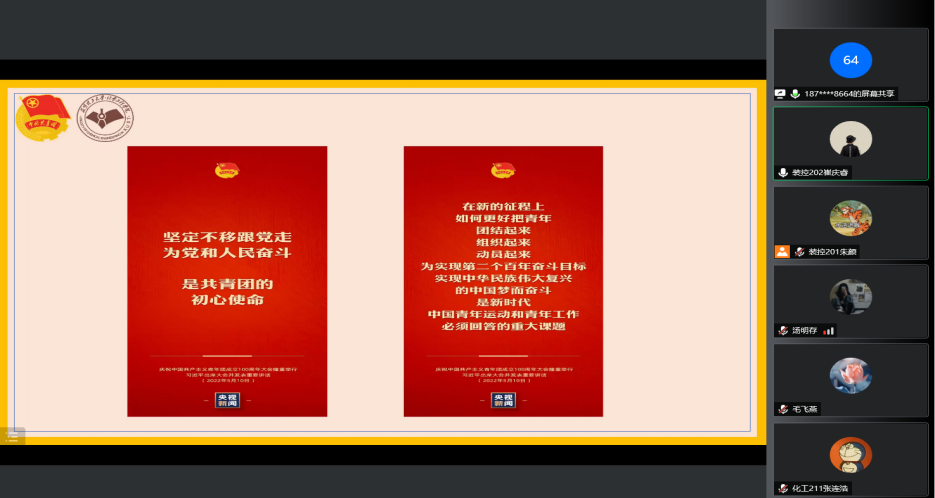 在线上开展了深入学习宣传贯彻“习近平总书记在庆祝中国共产主义青年团成立100周年大会上重要讲话精神”。本次活动由学院团委书记李凯宇老师领学。