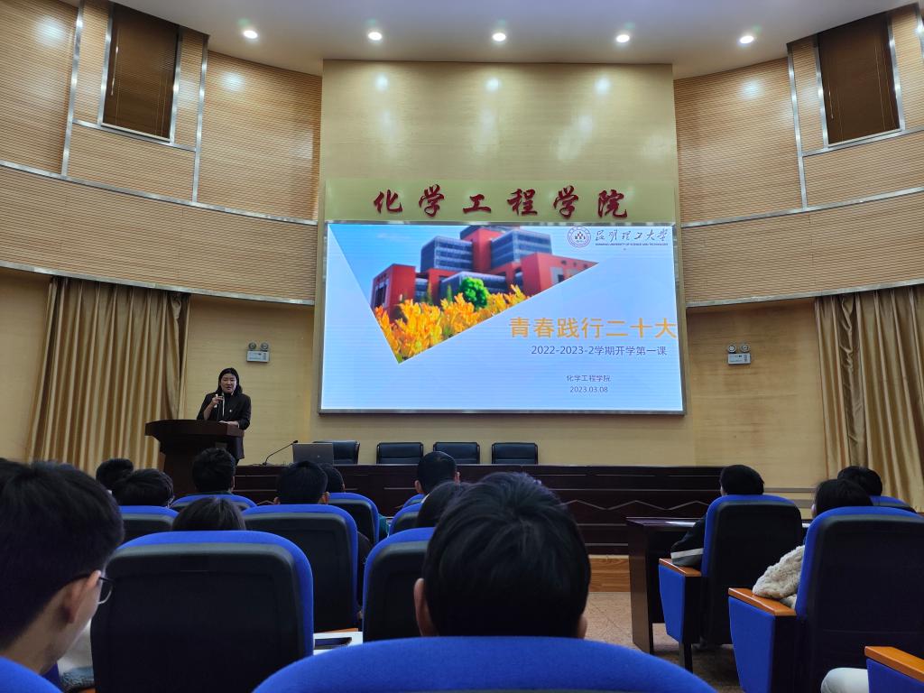 2020级在化工楼100报告厅开展了主题为“青春践行二十大”的年级大会,2020级全体学生参与了此次活动,本次活动由2020级辅导员李凯宇老师主持。