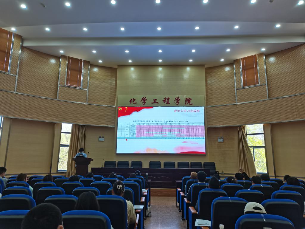 会议在国歌声中开始,会上学院团委指导老师赵振涛通报各班级团支部2022年相关工作数据;2022级专硕2班团支书杨景钦、化工193班团支书王心锐、化工203班团支书张永姣分别就“优化完善班团一体化建设”、“落实落细三会两制一课”、“加强团学骨干作风建设”等方面做工作交流和经验分享。最后学院团委书记李凯宇梳理了2023年共青团重点工作。