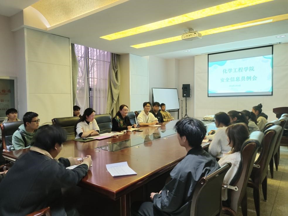在化工楼030会议室召开2024年3月安全信息员例会。本次例会由辅导员谢丽芬主持,学院党委副书记宁玲、辅导员叶廷艳以及化工院全体本科生安全信息员参会。