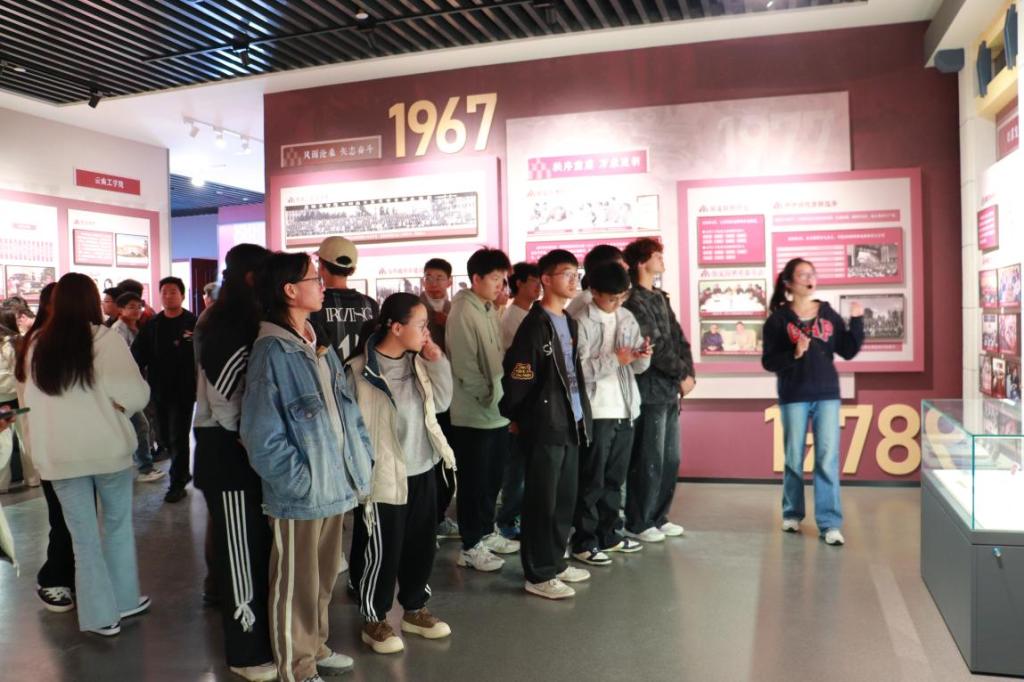 “七秩韶华昆工情 赓续荣光创一流”主题记录短片,了解学校七十年来的发展历程。随后在讲解员的讲解下,通过丰富的图片、文献和实物,生动展现了我校自建校以来的发展历程,包括重要的历史时刻、杰出校友事迹以及学校在教学、科研等方面的辉煌成就。参观结束后,师生们在校史馆前合影留念。