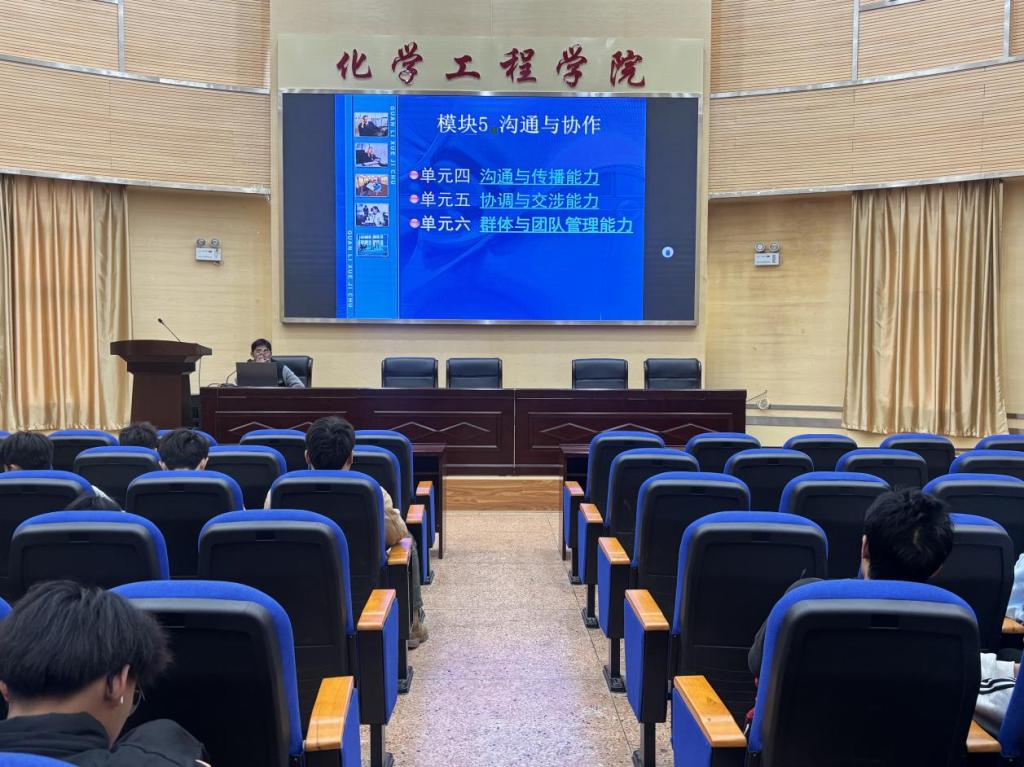 在化工楼100报告厅召开2024级学生干部大会,2024级全体班团干部共80余人参会。会议以"强基赋能促成长,踔厉奋发启新程"为主题,聚焦思想引领、能力培养与安全教育展开专题培训。