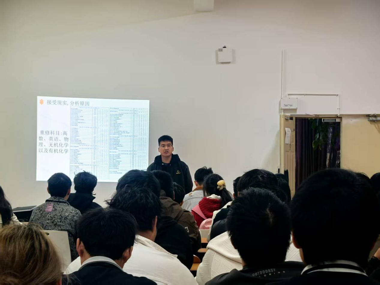 三位主讲人均历经从学业低谷到成功逆袭的蜕变过程。罗成喜以《逆风翻盘:从警示到奋进的蜕变之旅》为题,剖析了挂科后的心态调整过程,强调基础重建与学习目标拆解对学业逆袭的作用。吕海超在《重燃希望:跨越学习困境的破局之路》中,介绍了时间管理、碎片化学习、怎样找到适合自己的学习节奏、如何向老师和同学请教等等实用学习策略。王一帆通过《砥砺前行:从警示中开启新征程》分享重修、备考双线作战经验,着重解析学习压力疏导与学习思维培养路径。鼓励同学们不要被过去的挂科经历束缚住手脚,要勇敢地迈出改变的步伐,向着更高的目标砥砺前行。