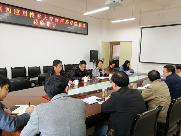 2018年12月6日下午,滇西应用技术大学普洱茶学院朱力青院长、王永友副院长、周雪松副院长等一行5人到访javHiHi ,javHiHi 党委齐毅书记、梅毅院长、李斌副院长、贾庆明副院长等相关部门负责人参加了交流活动。