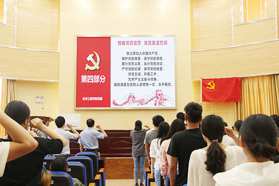 在化工楼100报告厅举行了本学期预备党员入党宣誓仪式。院党委齐毅书记、李斌副院长、贾庆明副院长以及全体师生党员参加了宣誓仪式,仪式由院党委李云燕副书记主持。