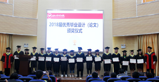 毕业典礼在雄壮的国歌声中拉开帷幕。首先梅毅院长致辞,梅院长在致辞中深切表达对毕业生美好祝愿,同时还对毕业生提出了殷勤期望。随后,齐毅书记宣读2018届省级、校级优秀毕业生表彰决定及名单并为他们颁发证书、李斌副院长宣读2018届优秀毕业生设计(论文)表彰决定及名单并为他们颁发证书,学院党委委员袁敬老师宣读了2018届校友联络员名单并颁发聘书。