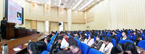邀请云南工业干部学院执行院长刘智国做“贯彻学习党的‘十九大’精神,积极推进学校‘双一流’建设”讲座。学院正式党员、预备党员、积极分子参加了此次讲座。