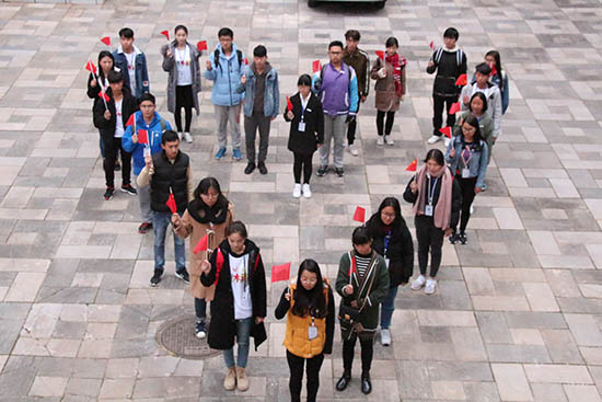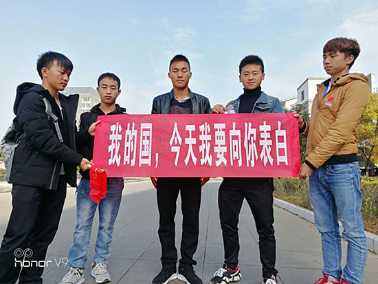 、云南师范大学、云南大学、云南民族大学的各个角落,对各校师生进行了关于爱国的采访。随风舞动的国旗,佩戴整齐的校徽,让他们成为一道亮丽的风景线。采访正式展开之后,各工作人员用热情驱走寒冷,用微笑感染彼此,用诚恳动人的叙述让被采访师生了解“一二九”运动,牢记“一二九”精神,被采访者认真的用笔在表白纸上写下对祖国母亲最诚挚的爱与祝福,写完之后,他们脸上洋溢着作为国人的骄傲与幸福,并积极与工作人员合影留念,在这个特别的日子里,我们一起对祖国表白,为祖国祝福。