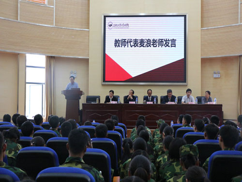教师代表麦浪老师代表学院全体教职工对新同学们的到来表示欢迎,接着提出了对新同学们的四个要求和期望:一、尽快适应新的学习生活环境,约束自身;二、做好学习计划,量力投身社团活动;三、树立正确的人生观、价值观;四、学会智慧的面对、坚强的面对生活中的一切事情。最后,麦浪老师代表学院全体教职工承诺:以教书育人为己任,不辜负家长同学的信任。