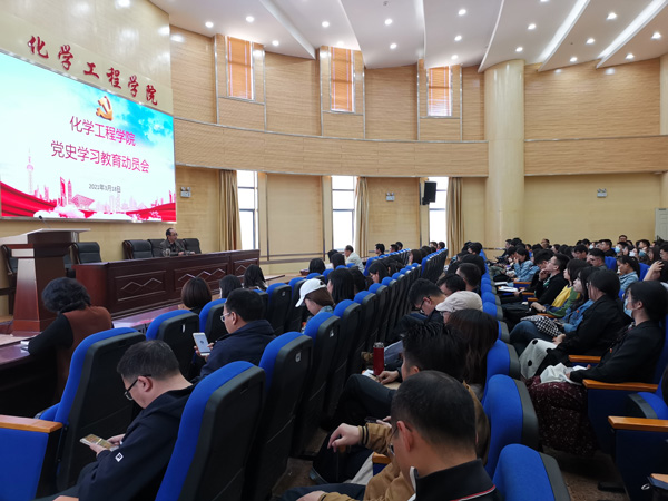 在化工楼100报告厅召开党史学习教育动员会,深入学习习近平总书记在党史学习教育动员大会上的重要讲话精神,贯彻落实党中央、教育部、省委教育工委和校党委关于党史学习教育的部署要求,做到学党史、悟思想、办实事、开新局。学院党委书记齐毅作动员讲话。