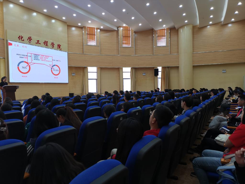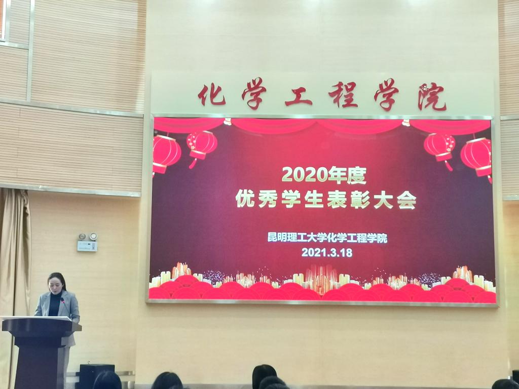 2020年度优秀学生表彰大会在化工楼100报告厅举行。学院党委书记齐毅、副书记李云燕、学工办主任袁敬、团委书记李凯宇、辅导员田世垚,以及相关学生代表共160余人参加表彰大会。会议由学工办辅导员谢丽芬主持。