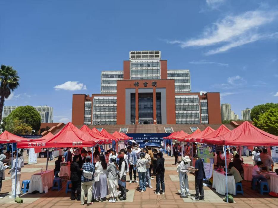 、环境科学与工程学院、生命科学与工程学院于 2025 年 5 月 8 日 13:30 - 16:30,在呈贡校区图书馆前广场联合举办了校园双选会。此次双选会吸引了众多企业和毕业生积极参与。